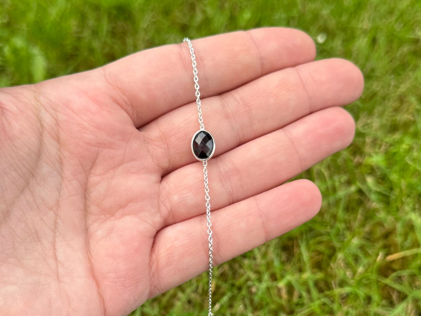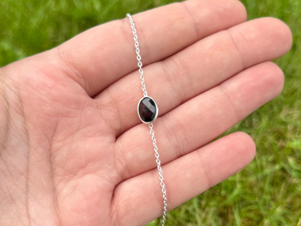 Verstelbare armband met een facet geslepen ovale Granaat van 925 Zilver.