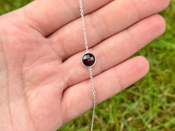 Verstelbare armband van 925 zilver met een facet geslepen ronde Granaat.