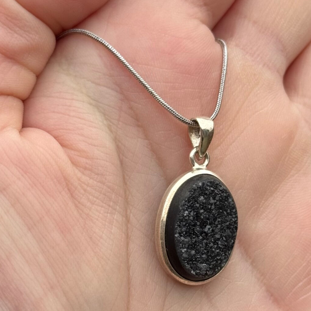 One of a kind hanger van Onyx gezet in massief 925 zilver. Inclusief Stainless Steel halsketting.