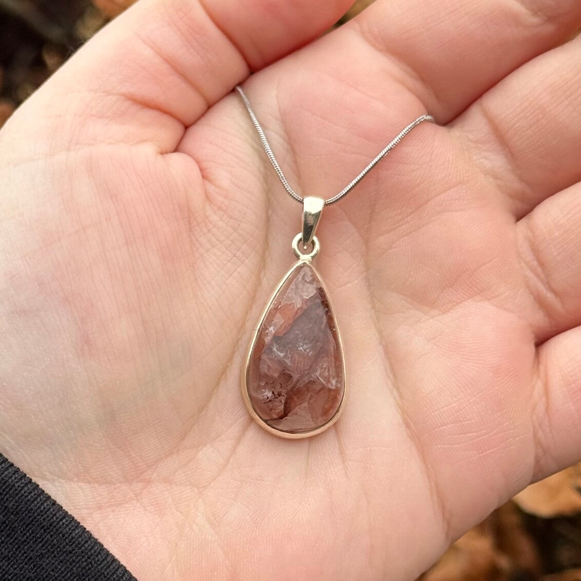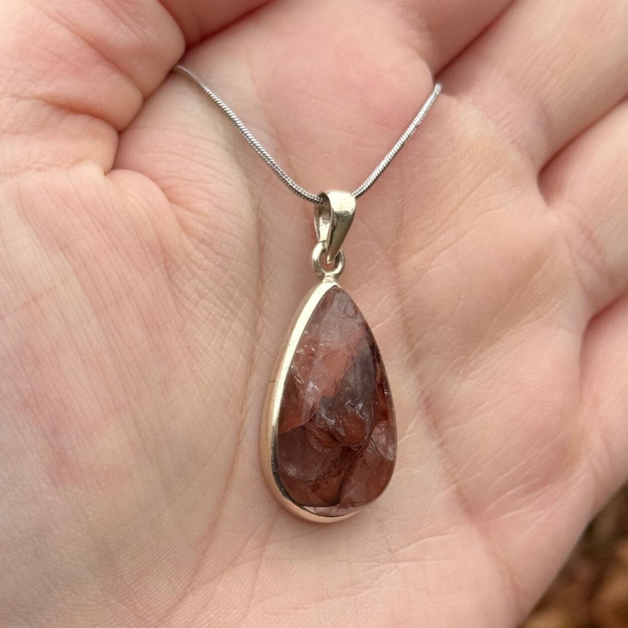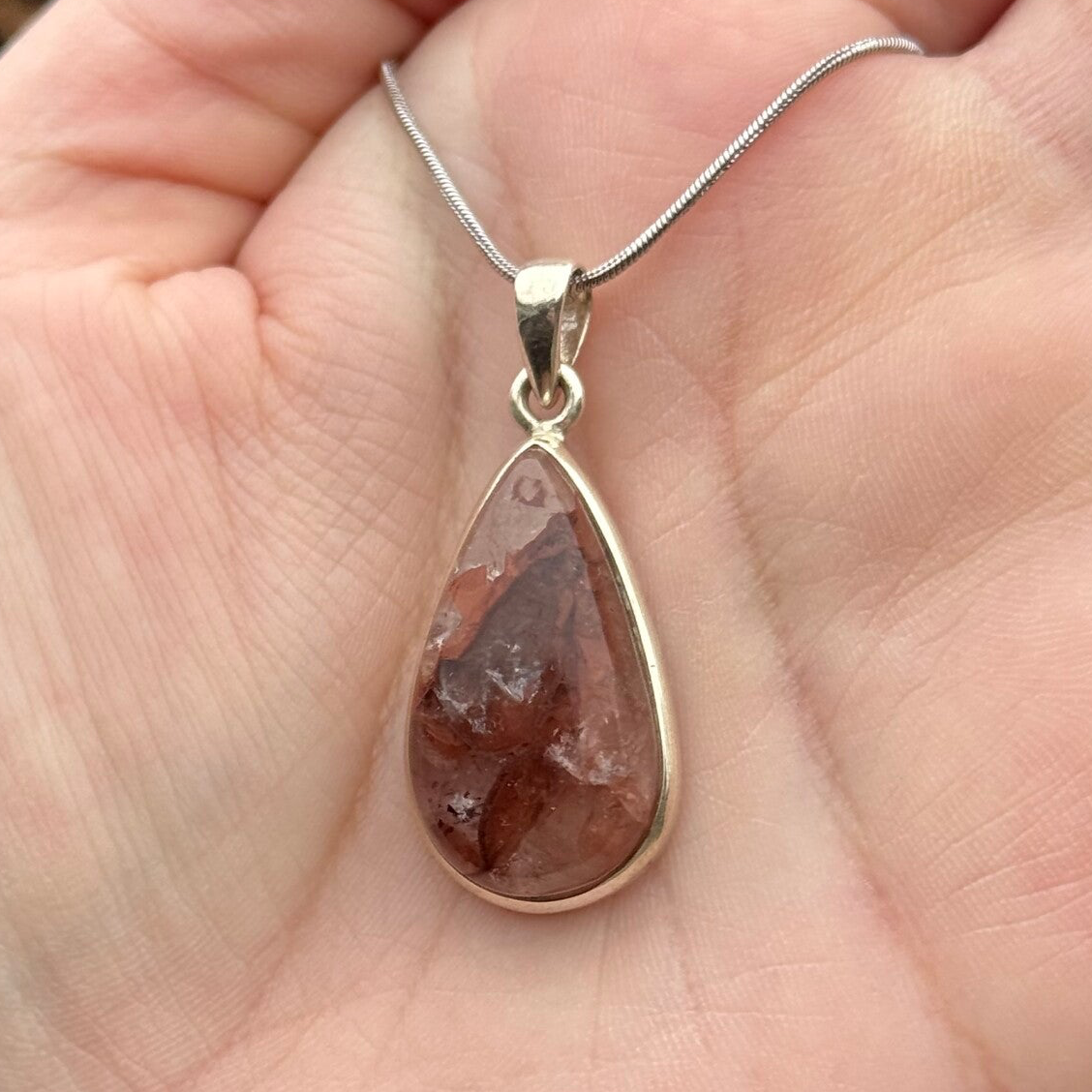 One of a kind hanger van Hematoïde Kwarts gezet in massief 925 zilver. Inclusief Stainless Steel halsketting.
