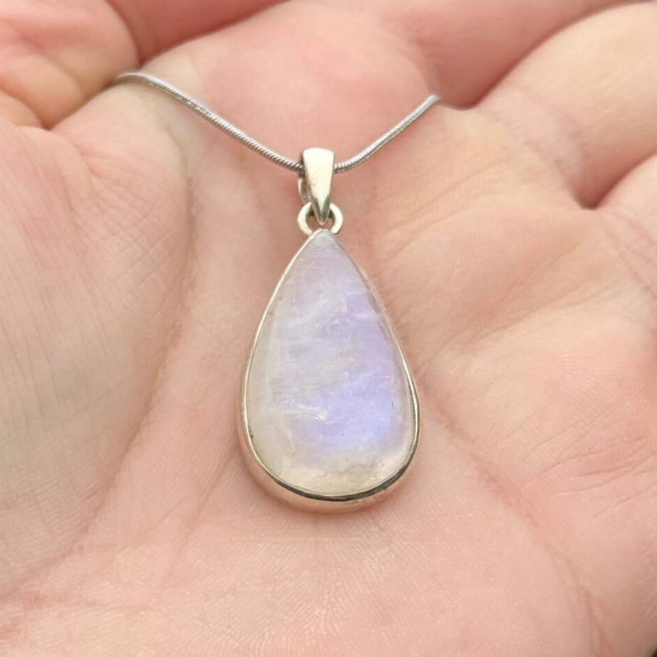 One of a kind hanger van Maansteen gezet in massief 925 zilver. Inclusief Stainless Steel halsketting.